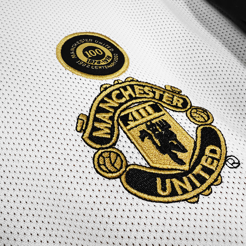 2001/2002 Manchester united 100th Centenary White Black Retro Soccer Jersey