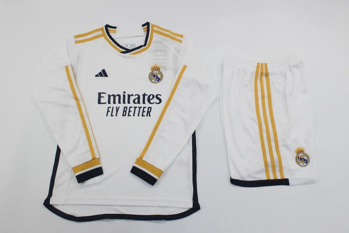 2023/24 Real Madrid home long sleeve kids kits