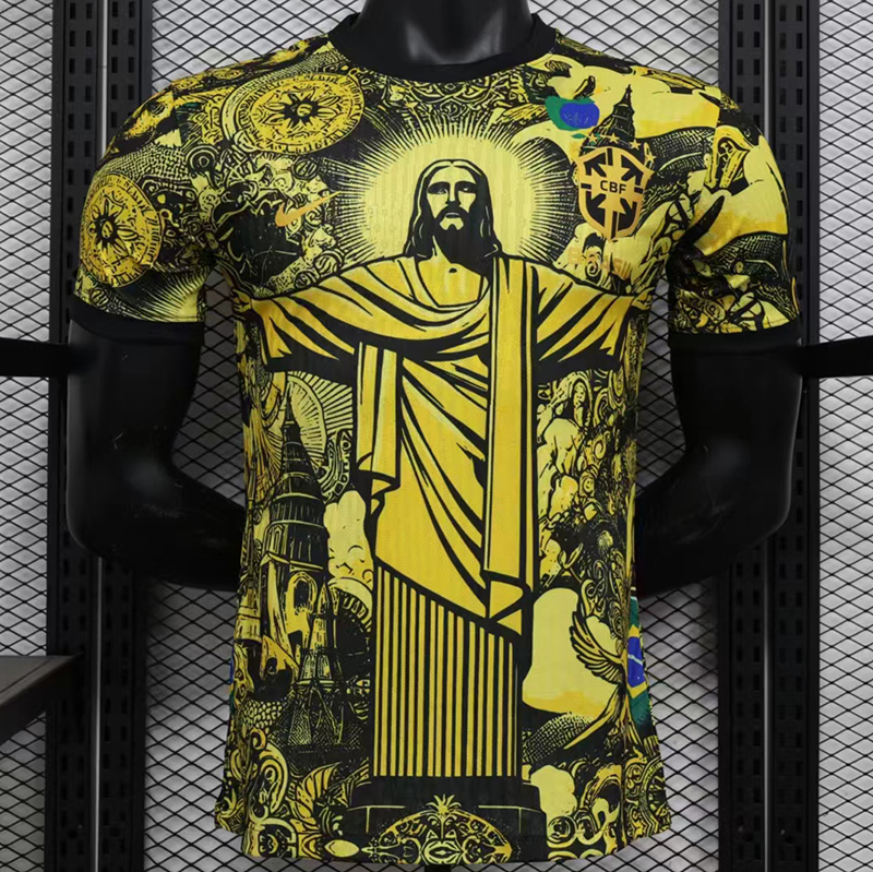 2024 Brazil Christ statue Yellow Player Version Soccer Jersey