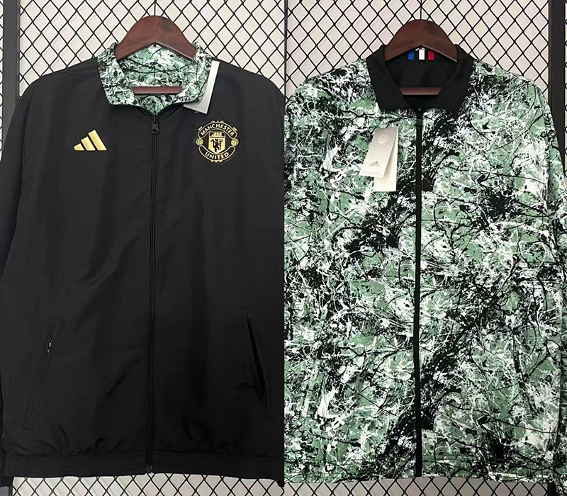 2024 Manchester united Black& White Green Double sided Windbreaker