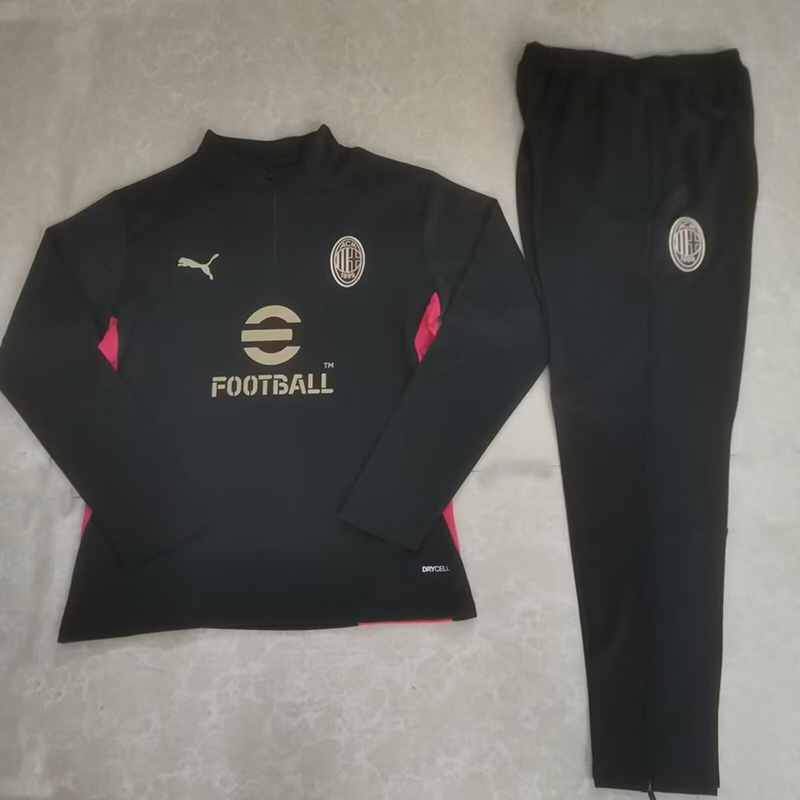24/25 AC MilanBlack Half Pull Tracksuit