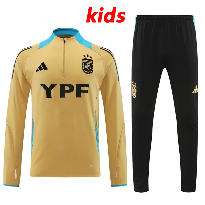 24/25 Argentina Mud Yellow Kids Half Pull Tracksuit (半拉链、泥黄色童装)