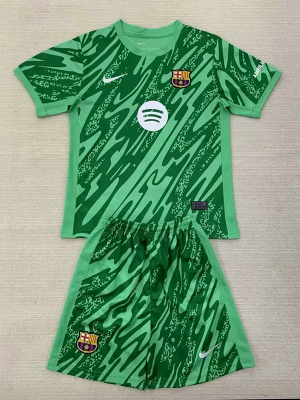 24/25 Barcelona Green Goalkeeper Kids Soccer Jersey
