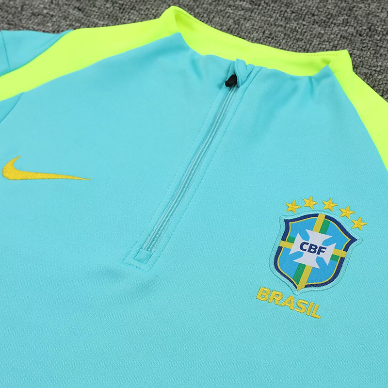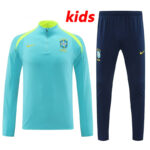 24/25 Brazil Green Kids Half Pull Tracksuit (半拉链、童装)