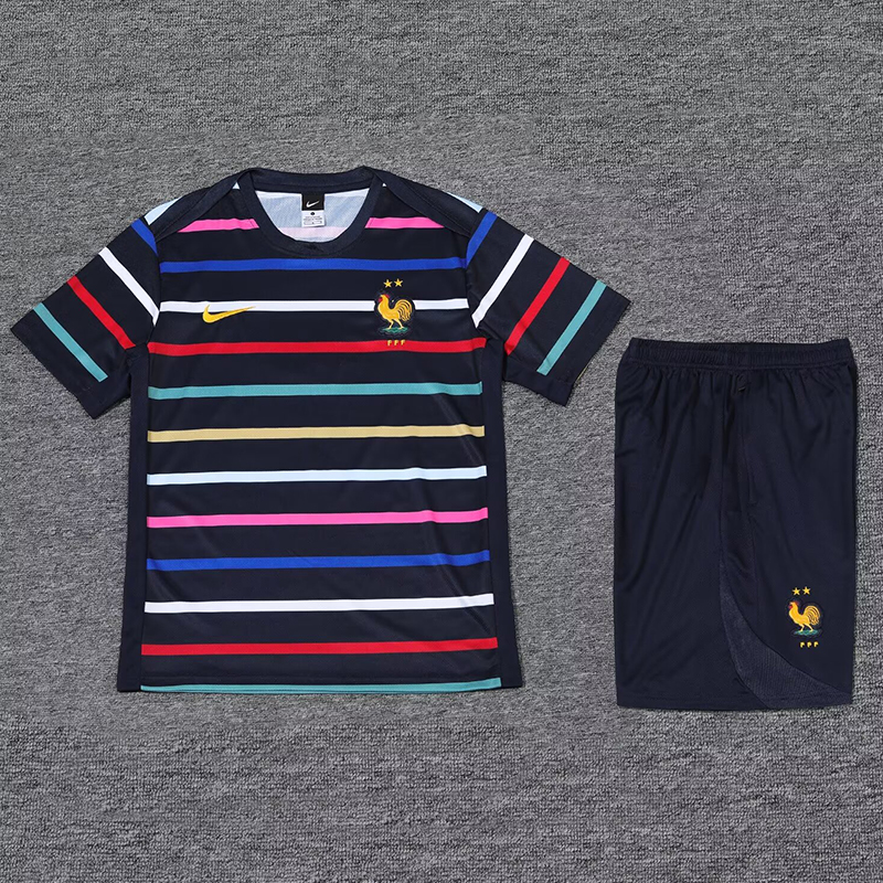 24/25 France Black And Colored StripesTraining Short Suit