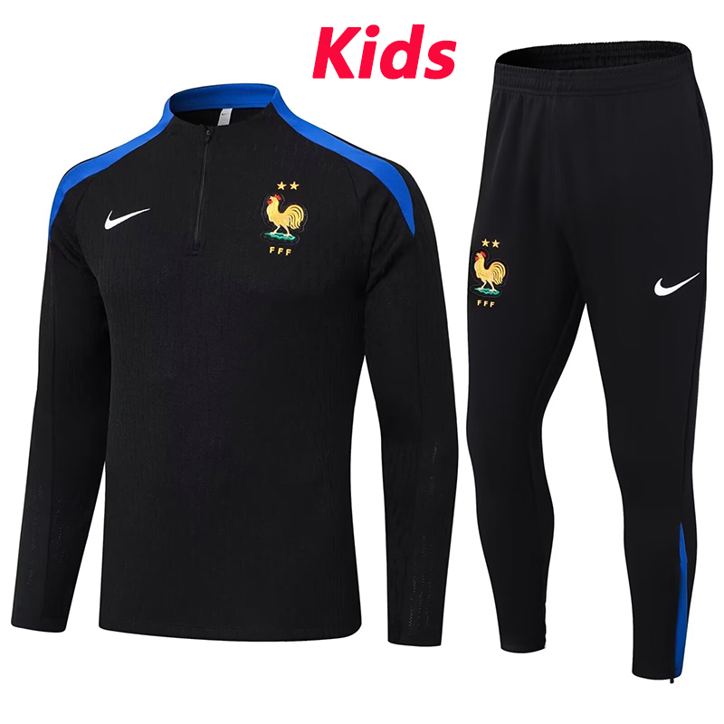 24/25 France Black Kids Half Pull Tracksuit (半拉链童装)