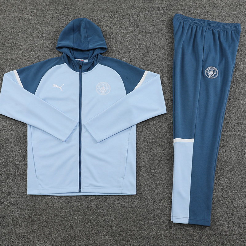 24/25 Manchester City Blue Grey Hoodie Jacket Tracksuit#01