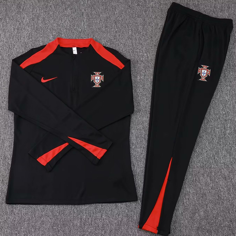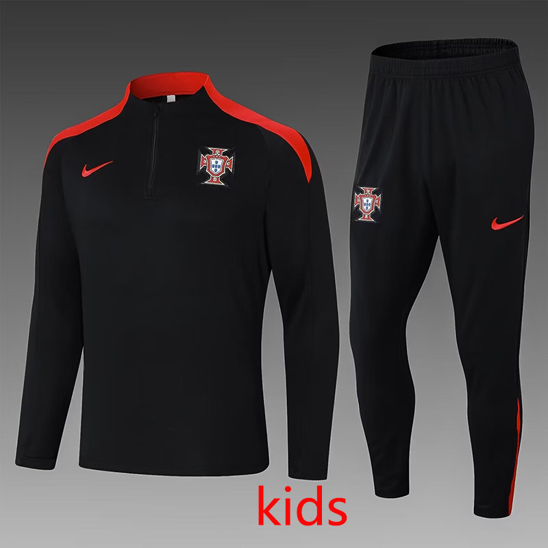 24/25 Portugal Black Kids Half Pull Tracksuit (童装)(半拉链)