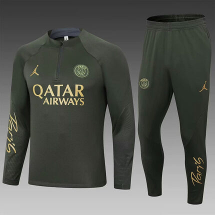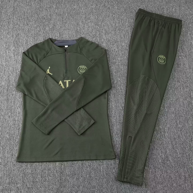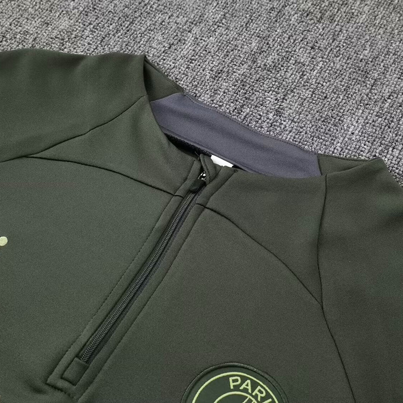 24/25 PSGParis Military Grass Green Kids Half Pull Tracksuit