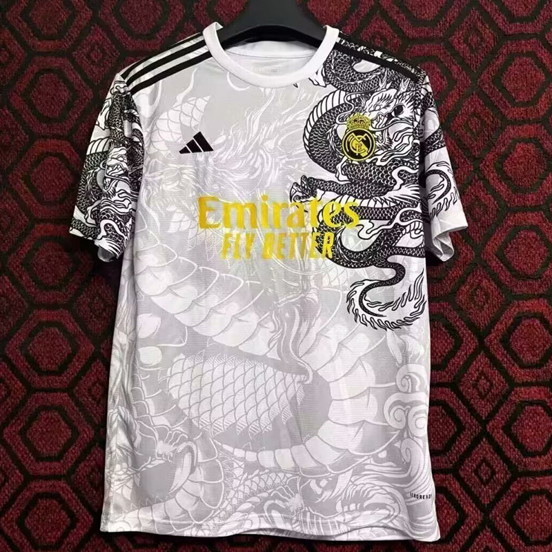 24/25 Real Madrid White (Black Dragon Pattern) Training Shirts