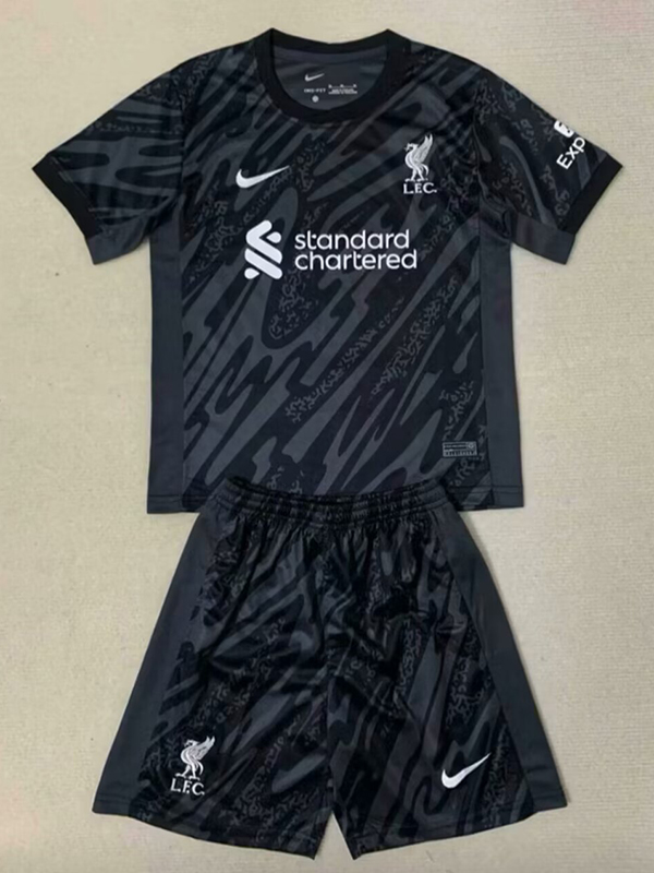 24/25 Liverpool Grey Black Goalkeeper Kids Soccer Jersey